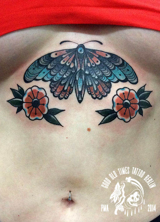 Goodoldtimestat Traditional Underboob Moth Tattoo Tattoos Von Tattoo Bewertung De