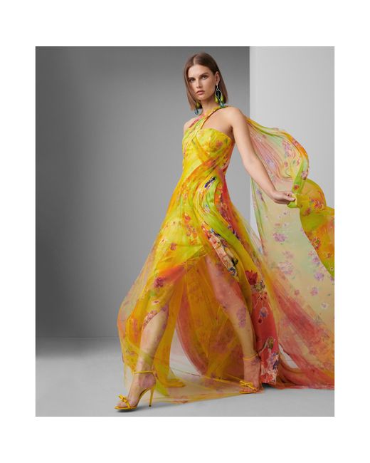 Ralph Lauren Vivianne Floral Organza Evening Dress In Yellow Lyst